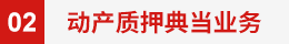 動(dòng)產(chǎn)典當(dāng)業(yè)務(wù)內(nèi)容:機(jī)器設(shè)備、庫(kù)存物資等。