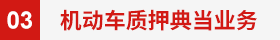 機(jī)動(dòng)車(chē)典當(dāng)業(yè)務(wù)內(nèi)容:本市非國(guó)有中小企業(yè)及個(gè)人自有的,未抵押給其他單位、個(gè)人的汽車(chē)、摩托車(chē)等。